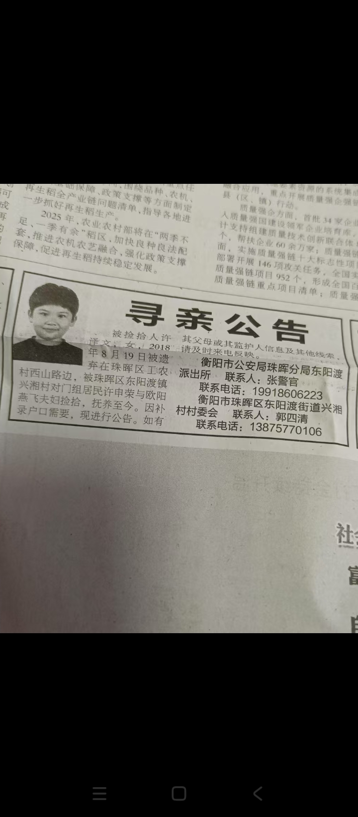 正文 失踪人员:许译文 admin V管理员 /昨天/317阅读/0评论 0415 失踪人员:许译文 (寻亲网编号:10714) 基本信息: 姓 名:许译文 性 别:女性 出生日期:2018.08.12 失踪日期: 失踪地点:湖南省衡阳市珠晖区西山区 失踪时身高:0.6 联系方式:15211467299 详细介绍: 信息图片: 寻人启事资料、照片等均由用户提供,如侵犯任何第三人肖像权、隐私权或其他合法权益,请联系本站删除!
